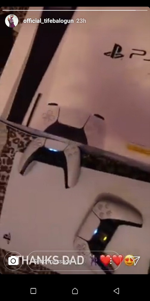 His son took to his Instagram story with a video of his Christmas present from his dad wish wrote; “Thanks Dad” with two love and a face emoji.